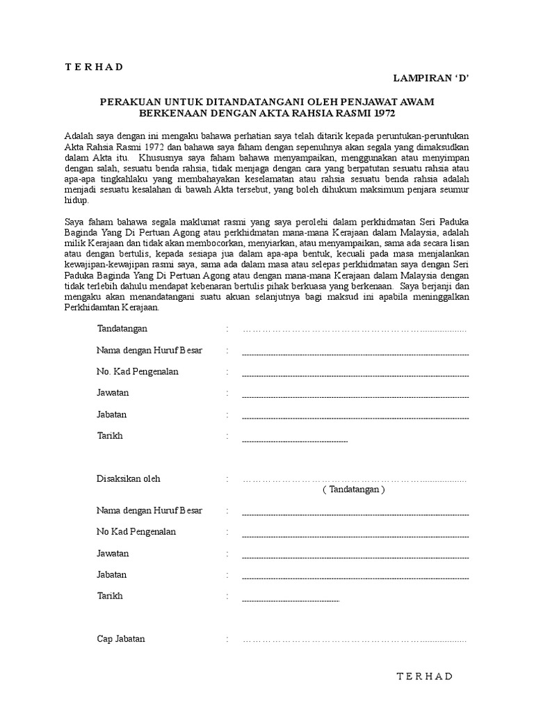 Akta Rahsia Rasmi Pdf Terhad Lampiran D Perakuan Untuk Ditandatangani Oleh Penjawat Awam Berkenaan Dengan Akta Rahsia Rasmi 1972 Adalah Saya Dengan Course Hero