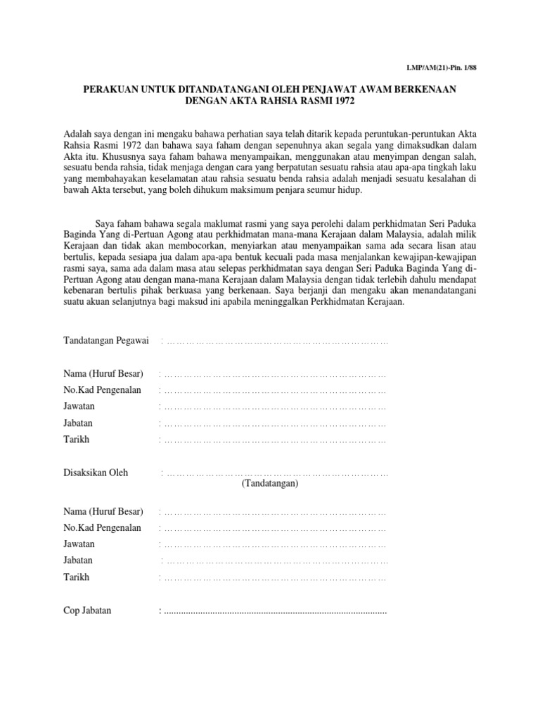 Borang Akta Rahsia Rasmi 1972 Pdf